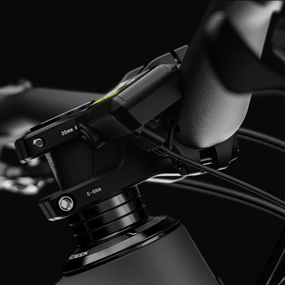 Evil has introduced a custom 35mm carbon bar with internal wire routing to clean up the cockpit and keep you focused on the fun stuff. The discreet Energy Bar is shaped with a 35mm rise, 5° upsweep, 8° backsweep and accommodates a 760-810mm width range.